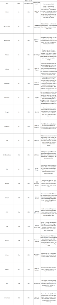 Share this: Click to share on X (Opens in new window) X Click to share on Facebook (Opens in new window) Facebook Like Loading... Related 2.18 Bubble Watch February 18, 2022February 18, 2022 / JSB Bracket / Leave a comment