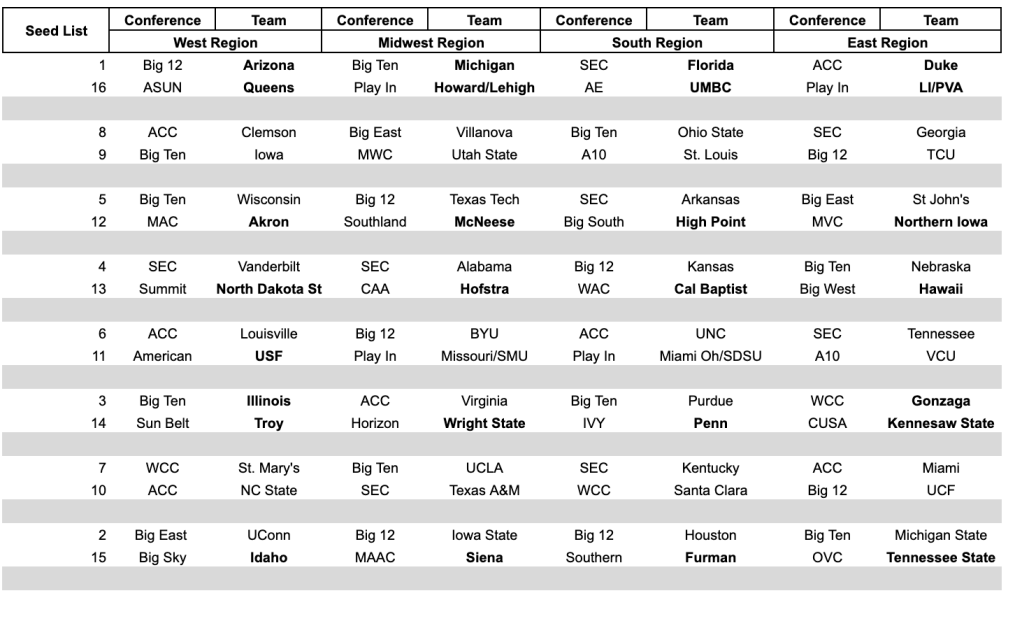 Share this: Share on X (Opens in new window) X Share on Facebook (Opens in new window) Facebook Like Loading... Related 2026 Final Bracketology March 15, 2026 / JSB Bracket / Leave a comment